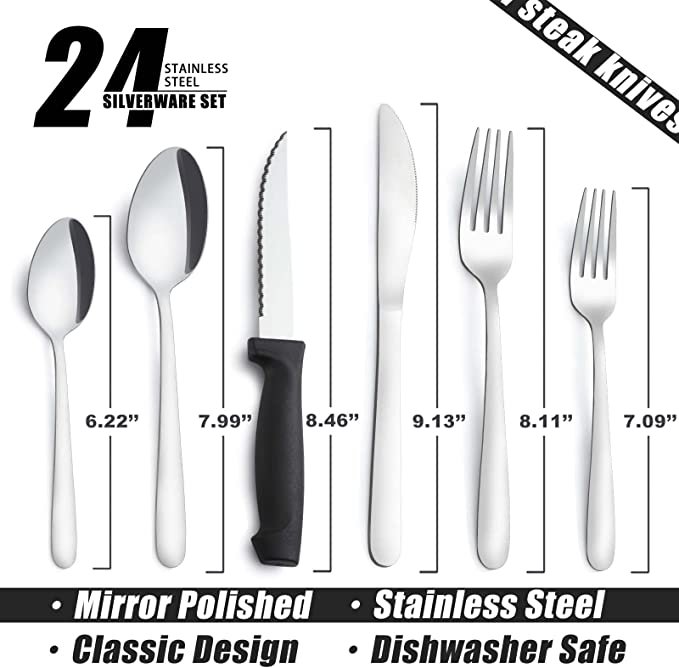 24 Pieces Silverware Set, Pleafind Cutlery Set for 4