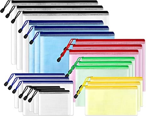 SUNEE Multisize Zipper Pouches(6 Colors, 21 Packs)
