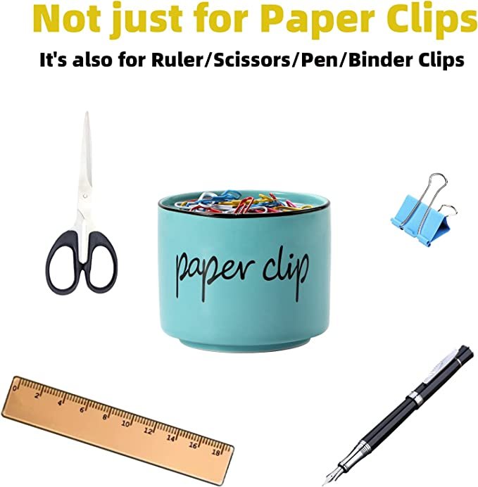 ONTUBE Porcelain Paper Clip Holders,Ceramic Paper Clip Organizer (Turquoise)