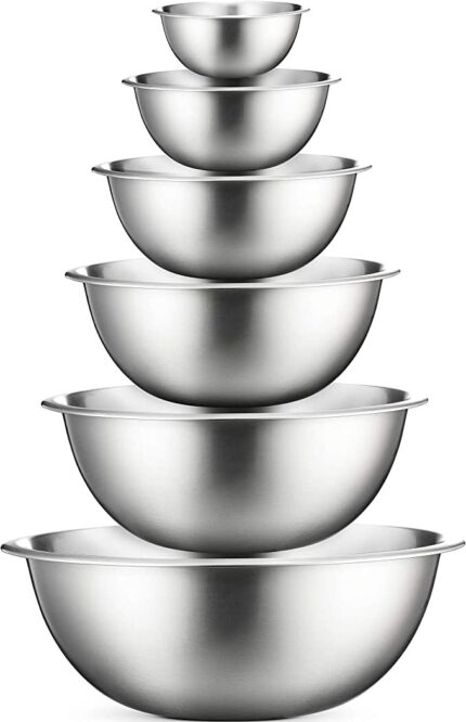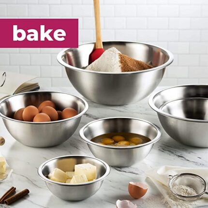 SIZED for EVERY TASK -With a range of 6 sizes, ¾, 1.5, 3, 4, 5, and 8-quart, metal mixing bowls add versatility and functionality to your kitchen, for all-purpose kitchen workhorses from prepping, mixing, stirring, to kneading dough like a pro.Set Includes: 6 Sizes