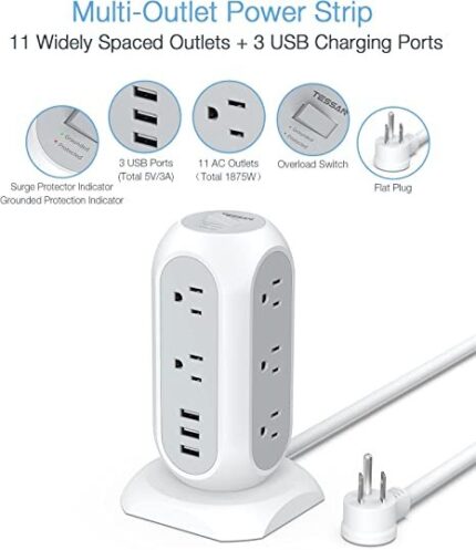 Tower Power Strip with 11 Outlets 3 USB Chargers