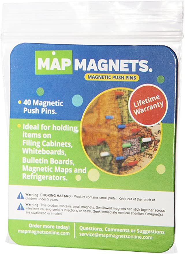 - Small Size To Pinpoint Items On Maps – Each magnet is about 1/8 x 3/8 inches (4 x 10mm). These tiny magnets are perfect to pinpoint points of interest on a map as map magnets, or these magnetic push pins can be used as whiteboard magnets, classroom magnets, and office magnets.