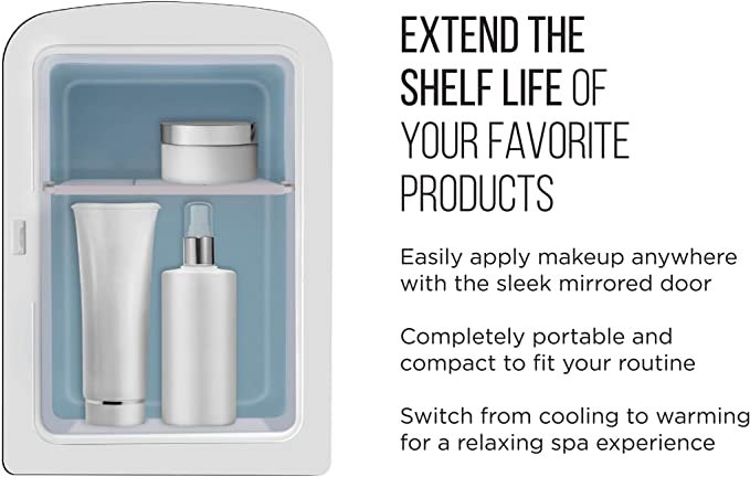 - STORE COSMETICS BEAUTIFULLY: Extend the shelf life of your favorite skin care serums, cosmetic staples, or fresh face masks by keeping them chilled right on your vanity. Use the heat function to keep moist towels warm for a relaxing experience.