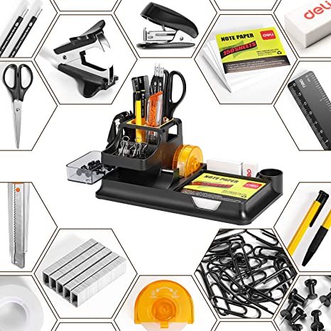 Deli 15 Pcs Office Supplies Kit with Desk Organizer
