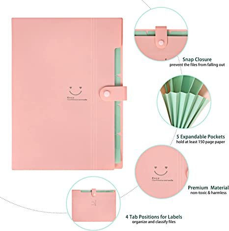 - Easy to use: Each expanding plastic folder has 5 expandable pockets, and the label position on the side helps to find the required files quickly. The snap button closure design prevents the documents from falling and keeps the paper clean.