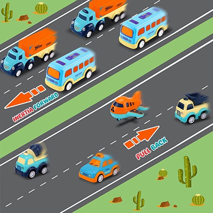 - 【Diverse Play Methods】Press the button on the top of the cab, you can see the bright flashing lights and hear the realistic siren sound, The siren sound will last for 8s. This colorful toys car better takes children into the world of real transportation. 6 mini cars are more suitable for toddler toys age 3-5 ; kids aged 3-6. Resistance to crash, Perfect designed.
