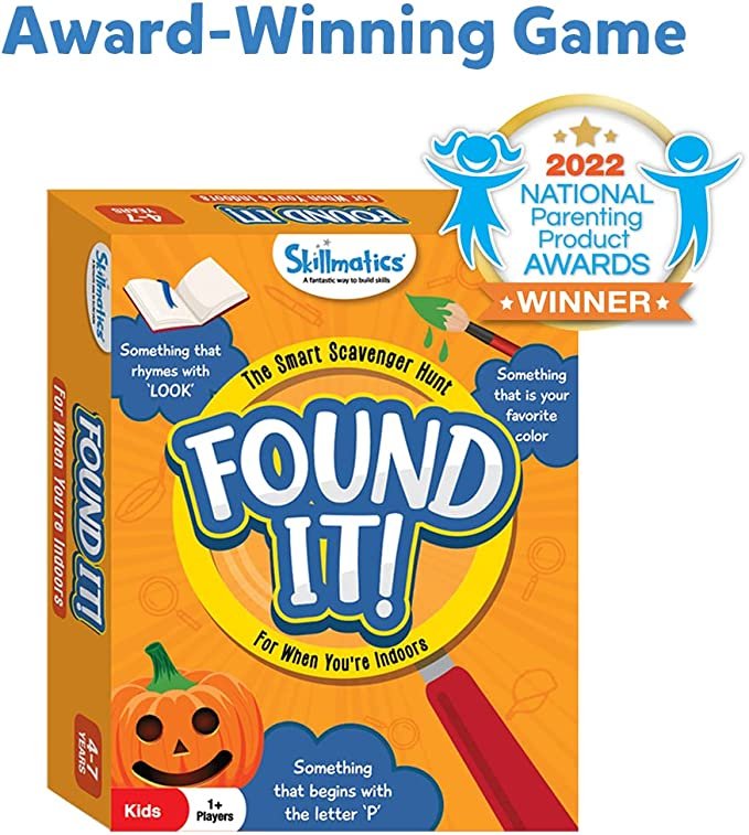 - INDOOR SCAVENGER HUNT – Found it! is an exciting game that helps children learn as they go on the most exciting ‘Search & Find’ with prompts like Can you find..”Something with a pattern? Something smaller than your palm?” etc.! Players must shout “FOUND IT!” as soon as they get their hands on the object! The first one to win 7 cards wins the game!