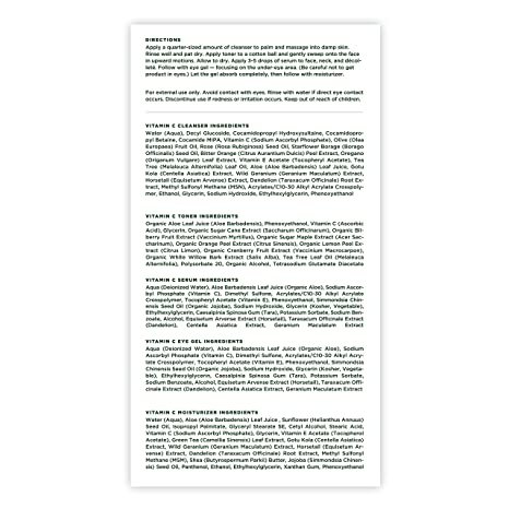 - Make Vitamin C Part of Your Daily Routine: Lightweight, not sticky or oily for no mess application; For best results, following cleanser with Vitamin C toner, then apply Vitamin C Eye Gel, absorb completely then finish with Vitamin C Moisturizer