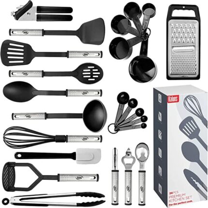 Kitchen Utensils Set 24 Nylon and Stainless Steel Cooking Utensil Set, Non-Stick and Heat Resistant (Black)