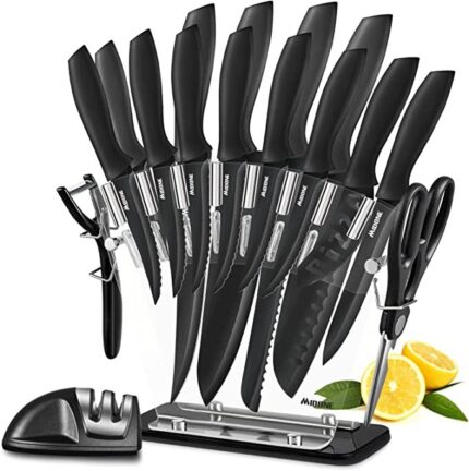 Master Maison 19-Piece Kitchen Knife Set With Wooden Knife Block – German Stainless Steel Knife Set